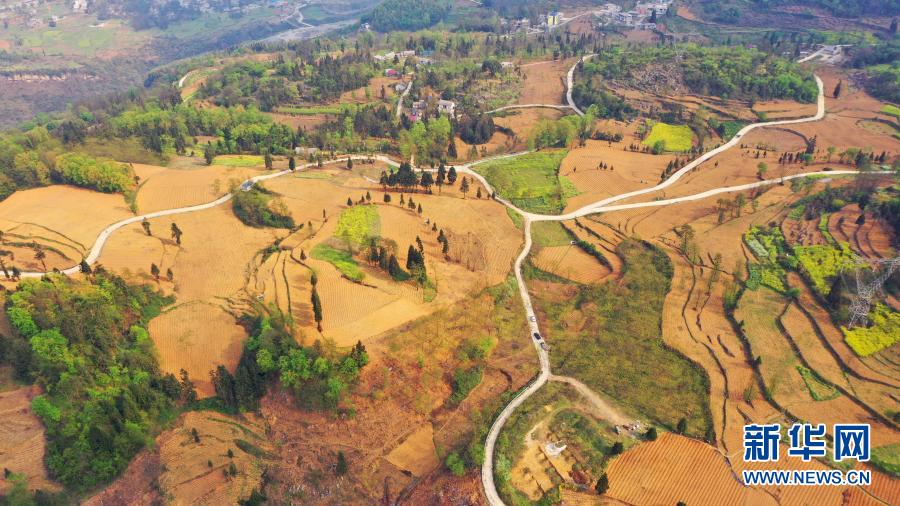 貴州省六枝特區大箐村的產業路四通八達,這里是倪裔豹駐村的“最后一崗”(2020年3月24日攝,無人機照片)。新華社記者 劉勤兵 攝