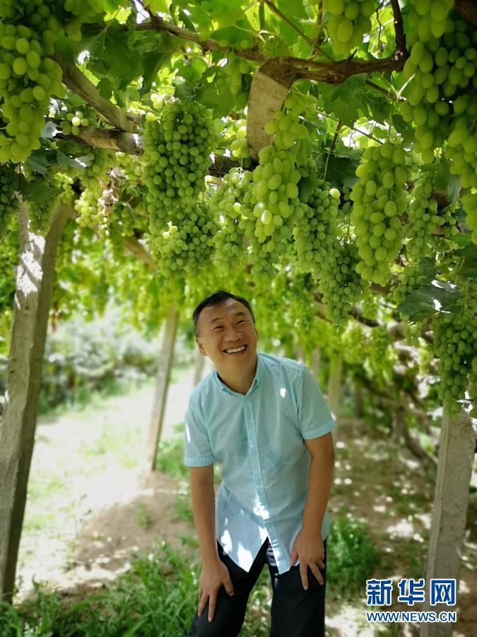 天津援疆干部席世明在于田縣一家葡萄種植合作社(資料照片)。新華社發