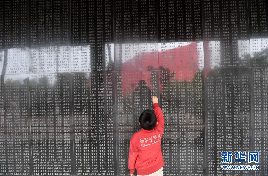 小朋友在廣西興安縣紅軍長征突破湘江烈士紀念碑園觀看英烈名錄(2月2日攝)。新華社記者 陸波岸 攝