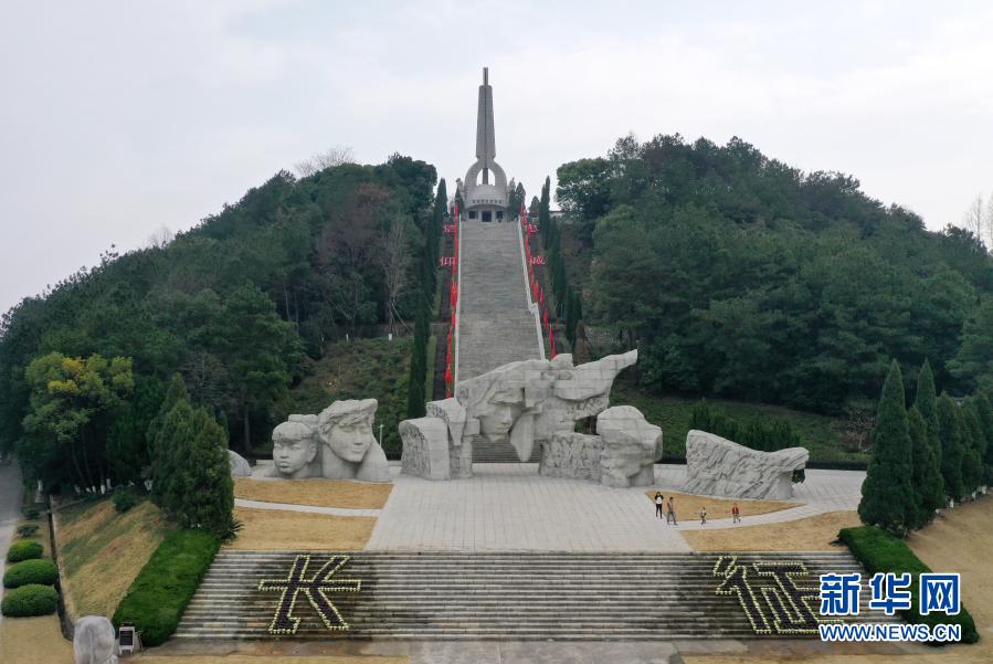這是2月2日拍攝的廣西興安縣紅軍長征突破湘江烈士紀念碑園(無人機照片)。新華社記者 陸波岸 攝