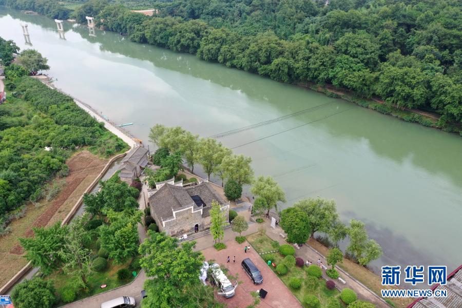 這是位于廣西興安縣界首渡口附近的“三官堂”和湘江河段(2019年6月29日攝,無人機照片)。新華社記者 陸波岸 攝