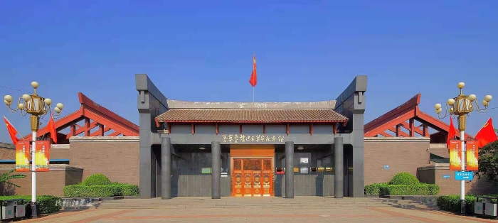 紀念館的廣場前綠草如茵、松柏青青,藍天飄浮著白云,遠處的群山蜿蜒起伏,民族風格的紀念館和薄一波題寫的“晉冀魯豫邊區革命紀念館”燙金館名顯得格外醒目。