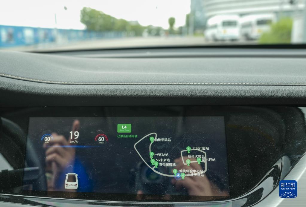 一輛L4級(jí)自動(dòng)駕駛汽車在自動(dòng)駕駛模式下,沿著重慶仙桃國際大數(shù)據(jù)谷示范運(yùn)營線路的開放城市道路進(jìn)行自動(dòng)駕駛模式行駛測試(2019年7月24日攝)。新華社記者 劉潺 攝
