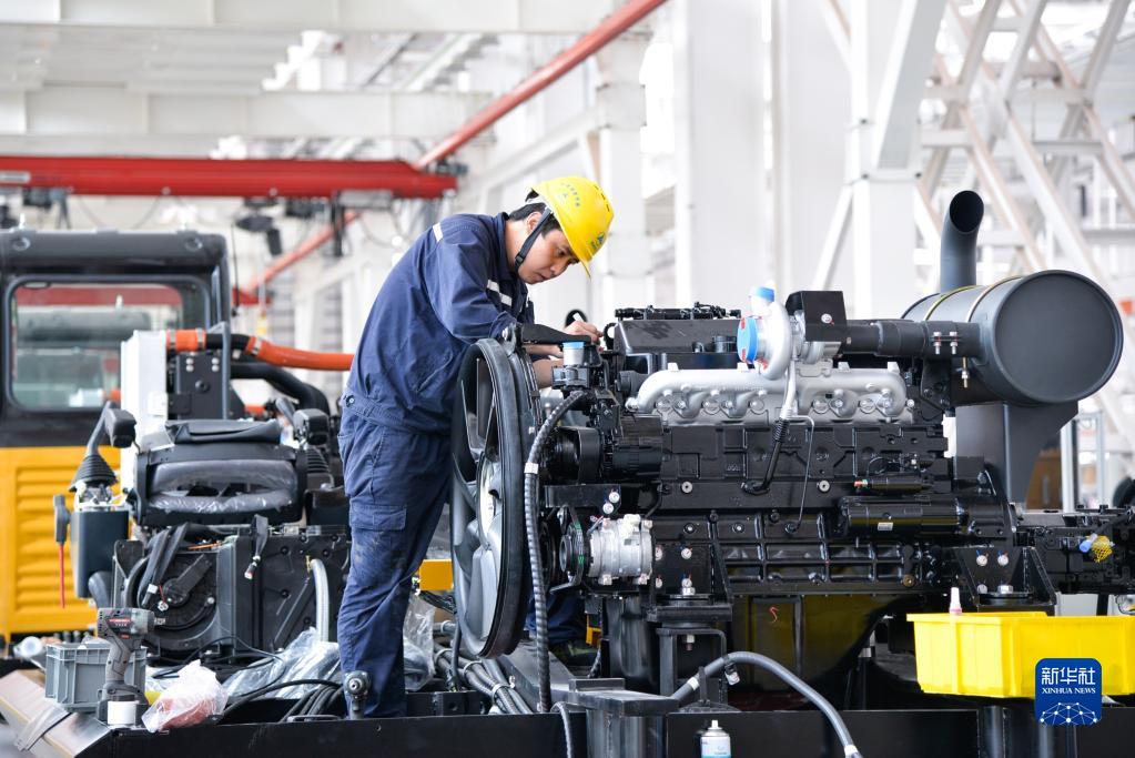 工人在位于重慶兩江新區(qū)的三一重工西南地區(qū)首個(gè)智能化“燈塔工廠”項(xiàng)目內(nèi)作業(yè)(2021年7月19日攝)。新華社記者 徐欽 攝