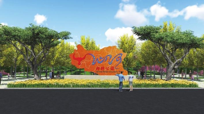 沁河郊野公園二期的主入口連接邯武快速路,作為項目的一個重要節(jié)點(diǎn),也是整個沁河郊野公園的重要門戶空間,既是從東側(cè)邯鄲市區(qū)過來看到的標(biāo)志性景觀,也是從西側(cè)武安市過來后呈現(xiàn)的第一視覺形象,具有非常重要的地位。在主入口處,記者看到這里機(jī)器轟鳴,一派忙碌的景象。主入口主要由南北軸線方向上的兩個對稱茶條槭花池、公園LOGO、銀杏廣場、游客中心、前廣場構(gòu)成。沁河原名牛首水,因此公園LOGO融入牛首、邯鄲市地圖、河道等元素,整體形成富有內(nèi)涵、大氣穩(wěn)重的公園LOGO。
