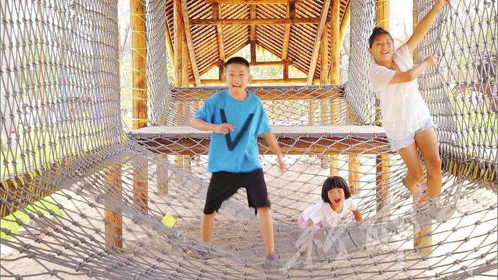 深受孩子們喜愛的丼苑樂玩吧,面積近2萬平方米,玩吧內有吊橋、爬架、樹屋索道、障礙長廊等游戲項目,設計風格崇尚自然風,茅草屋頂,原始夯土元素,古樸又親切。柳燕國對記者說,這里不僅孩子們喜歡,大人也都愛來這兒拍照,玩吧的整體風格高大上,照片拍出來也漂亮。現在不僅本村人天天來,住在附近和遠