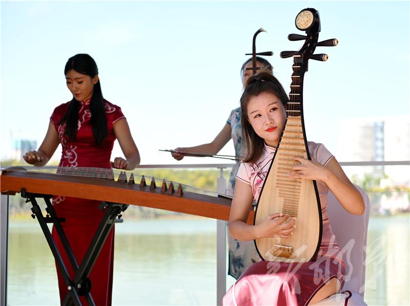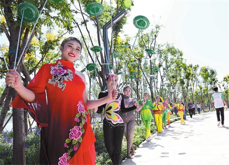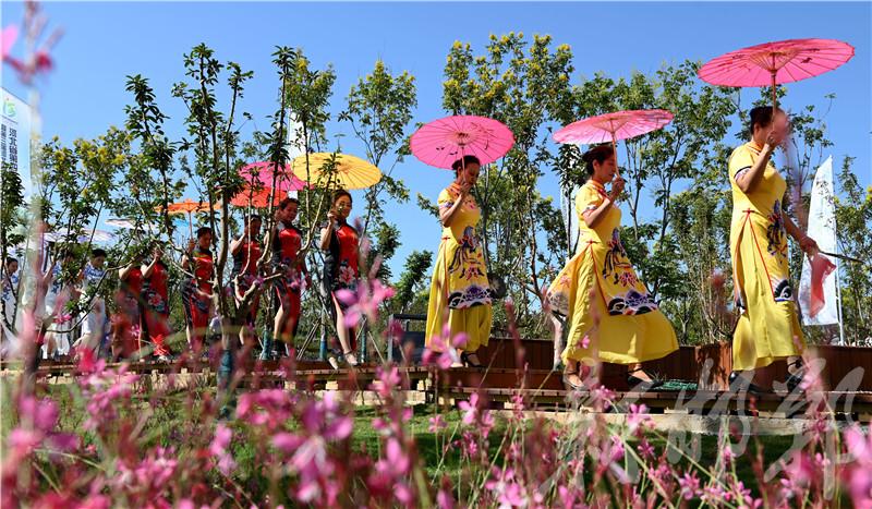 為迎接來自省內外的嘉賓,當日園內開幕式活動精彩紛呈。伴隨著優美、舒緩的旋律,太極愛好者列方陣表演太極功夫,展現武術與音樂的剛柔相濟之美;旗袍愛好者身著優雅、端莊的各色旗袍,邁著娉娉裊裊的步伐,沿著山水樹林間緩緩前行。200人組成的戰馬隊演繹“趙王出征”,士兵聲威陣陣,戰馬雄姿颯颯。這邊“大媽”們跳起了歡快的廣場舞,那邊青春少年的街舞盡顯動感活力。還有精彩不斷的雜技表演、韻味十足的古樂彈奏、妙趣橫生的戲曲小品、長袖翩翩的趙風古舞……一路行一路看,表演引人入勝,美景目不暇接。