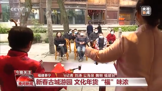 在福建泰寧,從1日開始,當地在泰寧古城推出新春游園活動,現場設置了擂茶制作、山歌演唱、竹編技藝、雕版印刷等傳統文化體驗活動,吸引了不少當地市民、游客前來參加。