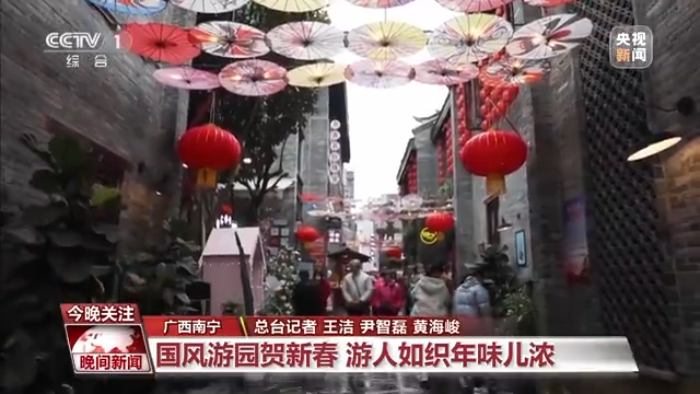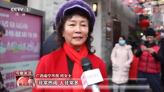 廣西南寧市民何女士:非常熱鬧,人非常多,非常有節日氣氛。你看這個傘就比較獨特,我還沒見過,非常漂亮,一看見就想在這兒留個影。三街兩巷就是我們南寧的一個縮影。