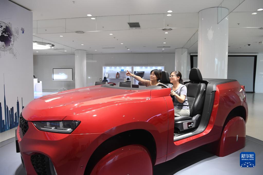 在河北保定市長城汽車哈弗技術中心,參觀者在體驗5G智能駕駛(2021年7月15日攝)。新華社記者 朱旭東 攝