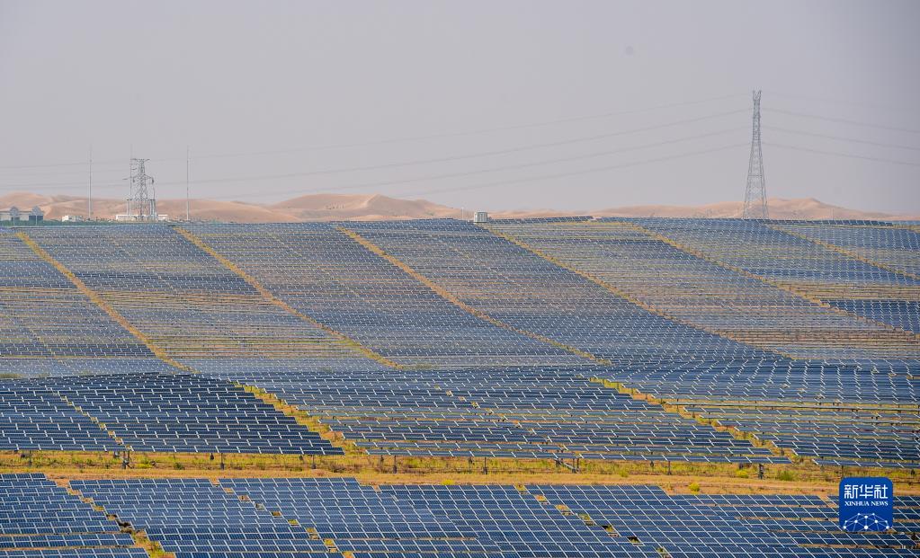 這是位于內蒙古庫布其沙漠中的光伏發電基地(2020年9月14日攝)。新華社記者 連振 攝