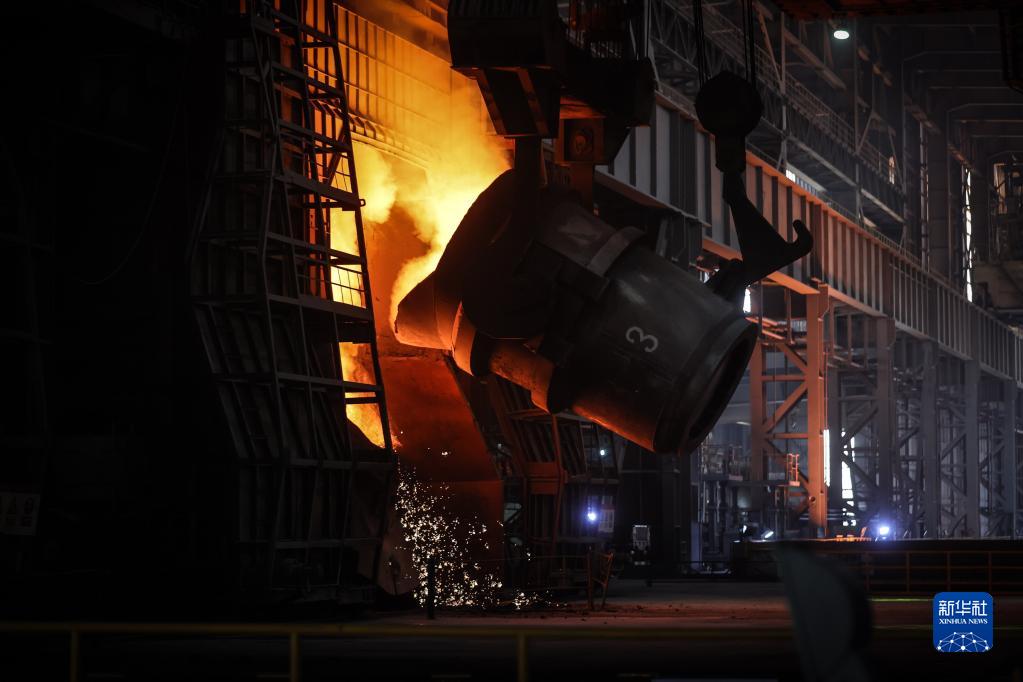 遼寧省鞍山市鞍鋼集團鞍鋼股份煉鋼總廠三分廠生產車間(2021年4月20日攝)。新華社記者 潘昱龍 攝