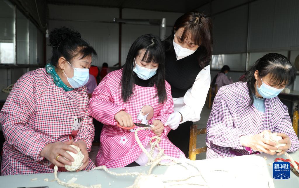 在遼寧省鞍山市臺安縣高力房鎮喬坨村,婦女在當地脫貧產業項目支持的工藝品廠里工作(2021年3月4日攝)。新華社記者 蔡湘鑫 攝