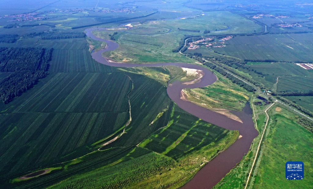 遼寧省鐵嶺市福德店遼河干流起點風光(2021年8月23日攝,無人機照片)。新華社記者 姚劍鋒 攝