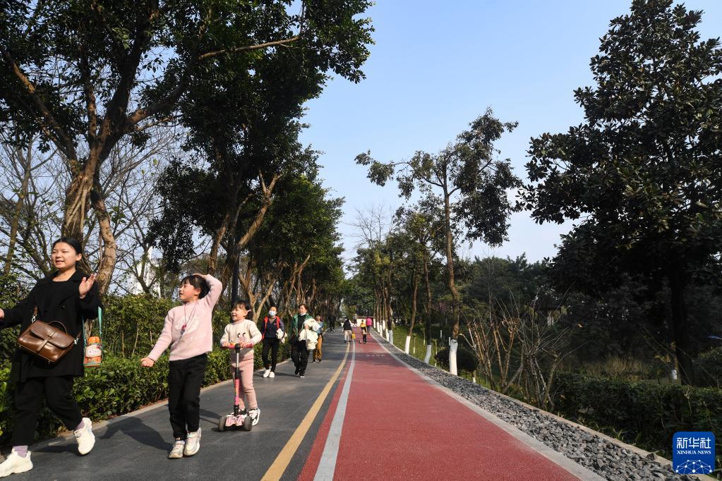 市民和游客在重慶市大渡口區重鋼崖線山城步道游覽(2022年2月15日攝)。新華社記者 王全超 攝