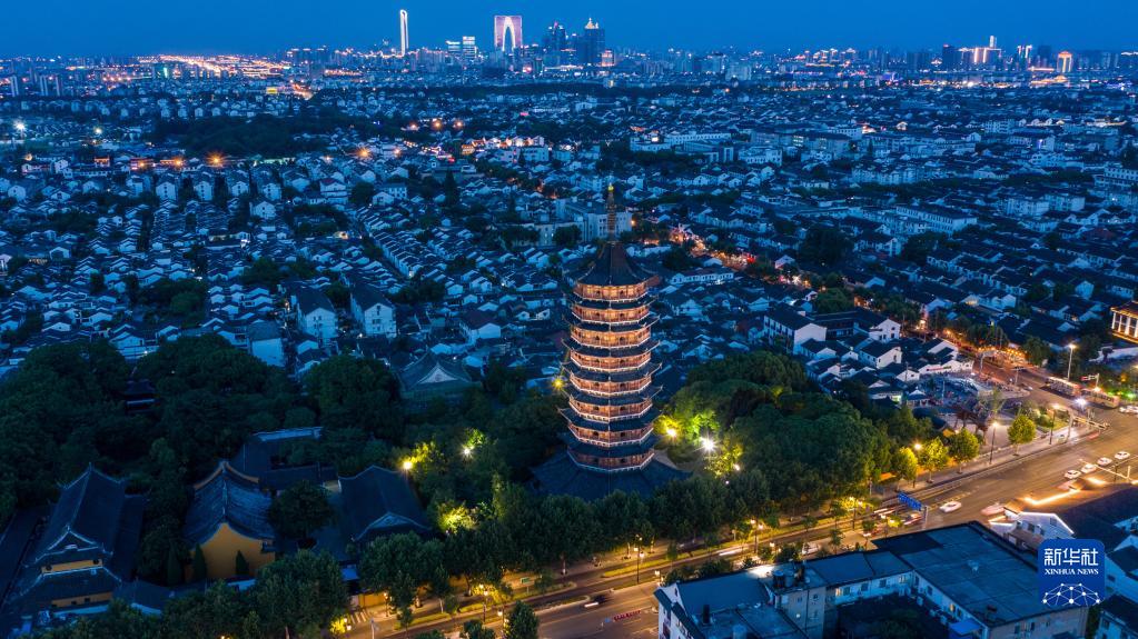 這是2020年8月24日在蘇州姑蘇區拍攝的城區夜景(無人機照片)。 新華社記者 李博 攝