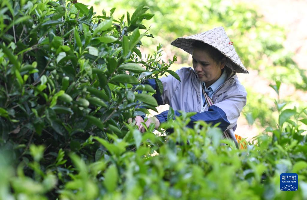 海南省五指山市水滿鄉毛納村茶農在茶園采茶(2022年4月10日攝)。 新華社記者 楊冠宇 攝