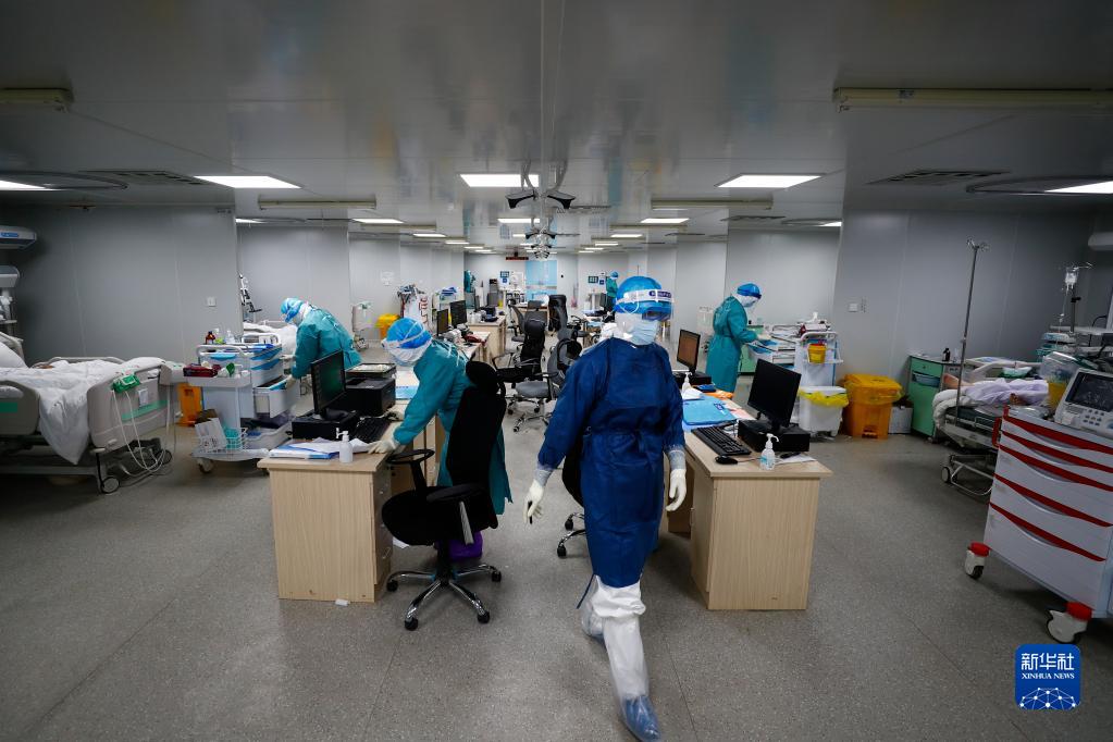 在武漢火神山醫院,重癥一科醫護人員緊張忙碌(2020年2月24日攝)。新華社發(王皓宇 攝)