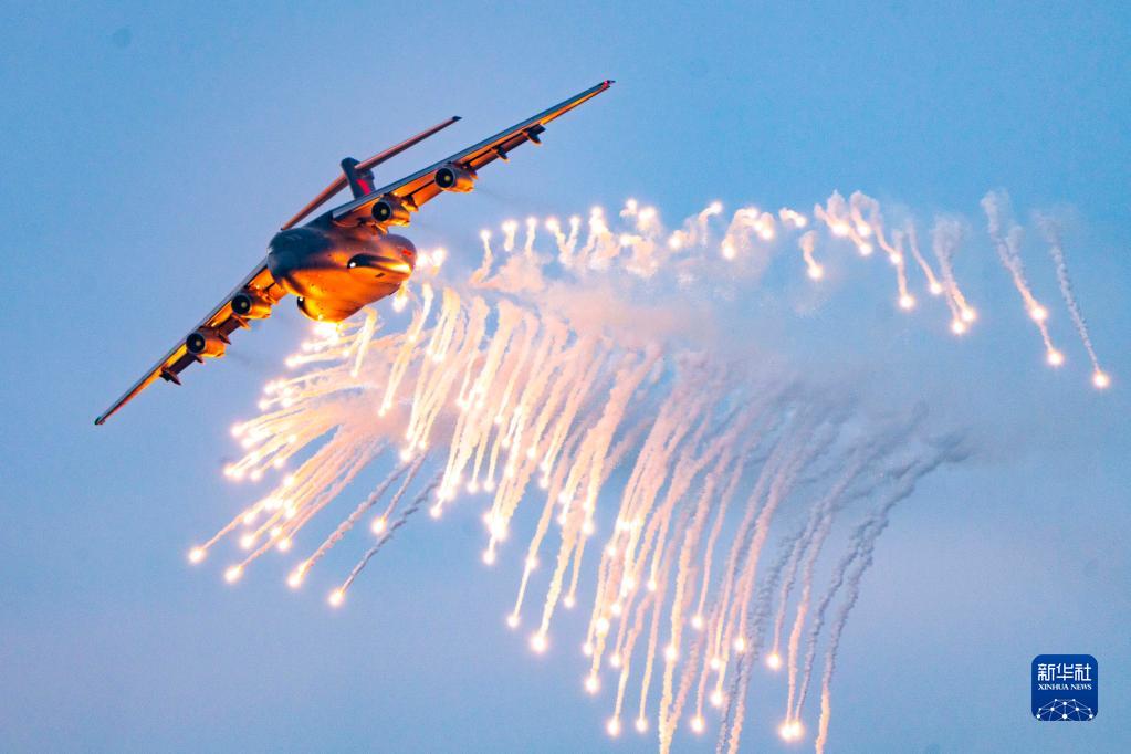 中部戰區空軍航空兵某團運-20飛機進行釋放干擾彈訓練(2020年12月10日攝)。新華社發(張猛 攝)