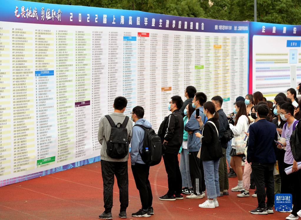 畢業生在2022屆上海高校畢業生秋季校園招聘會上了解崗位信息(2021年10月12日攝)。新華社記者 劉穎 攝
