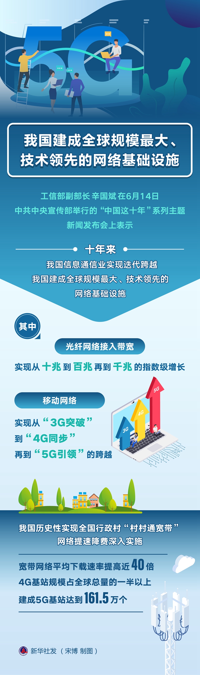 新華社北京6月14日電(記者張辛欣)工信部副部長辛國斌14日表示,十年來,我國信息通信業實現迭代跨越,建成全球規模最大、技術領先的