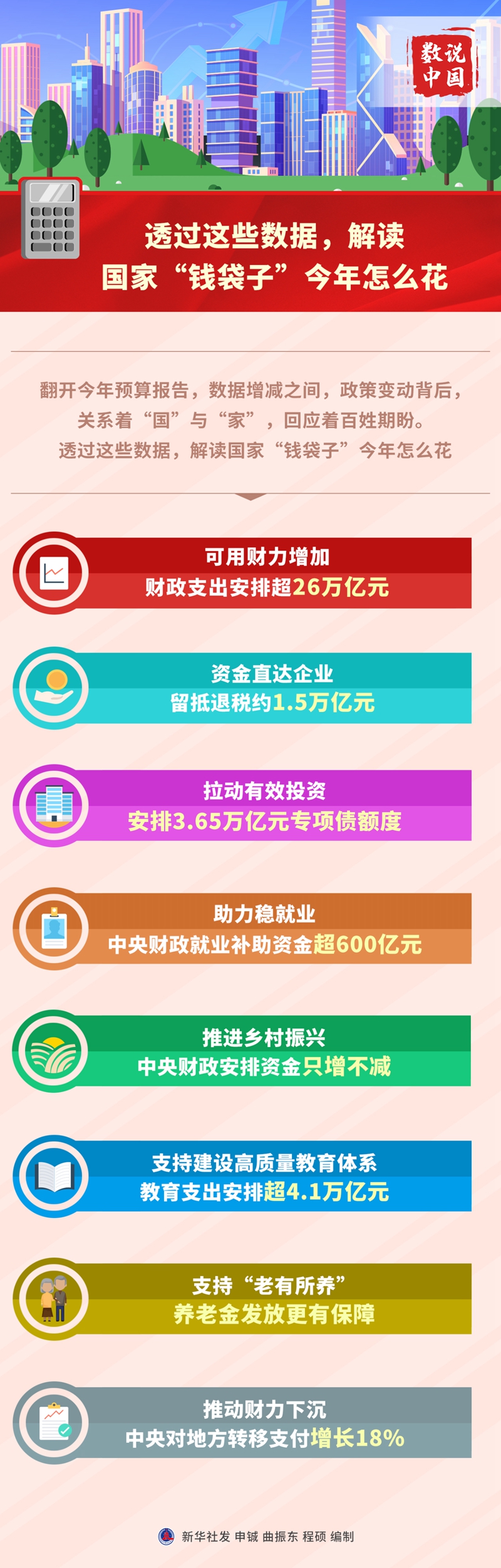 新華社北京3月7日電 題:透過這些數據,解讀國家錢袋子今年怎么花 新華社記者 翻開今年預算報告,數據增減之間,政策變動背后,