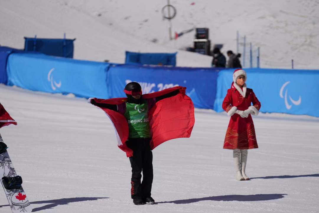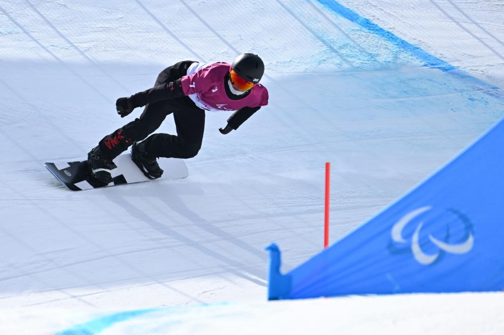 在剛剛結束的北京冬殘奧會單板滑雪男子障礙追逐UL級比賽中,中國選手紀立家、王鵬耀、朱永鋼包攬金銀銅牌。3月6日,中國選手紀立家在比