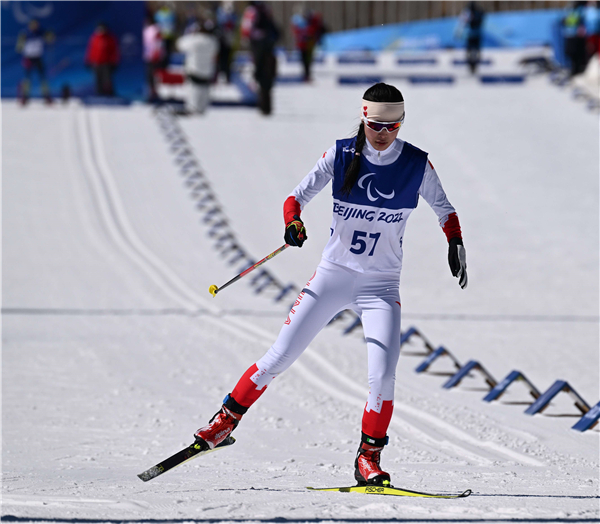 3月5日,中國選手劉子旭在比賽后。新華社記者萬象攝 河北新聞網3月5日訊(河北日報記者楊明靜)在剛剛結束的北京冬殘奧會殘奧冬季兩項男