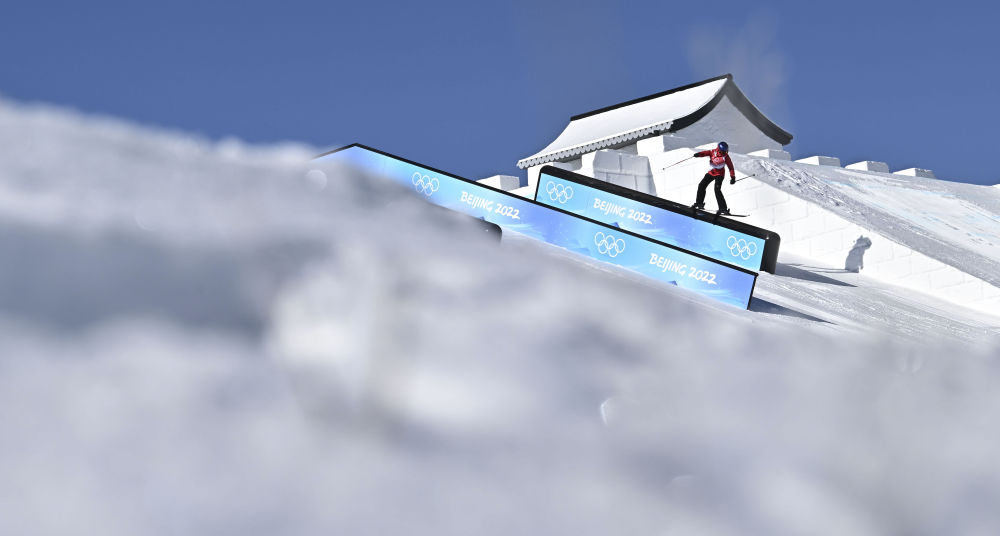 2月14日 冬奧會自由式滑雪女子坡面障礙技巧資格賽 在張家口云頂滑雪公園開賽中國選手谷愛凌第一個出場 首輪得到57 28分第二輪