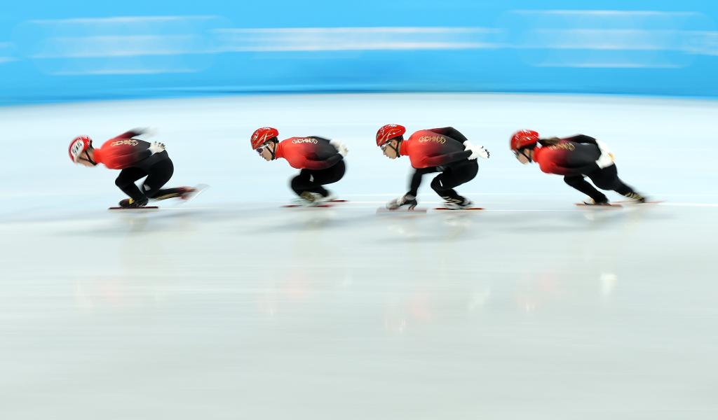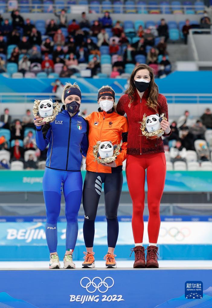 2月5日,冠軍荷蘭選手伊雷妮·斯豪滕(中)與亞軍意大利選手弗蘭切絲卡·洛洛布里吉達(左)、季軍加拿大選手伊莎貝爾·韋德曼在頒獎儀...