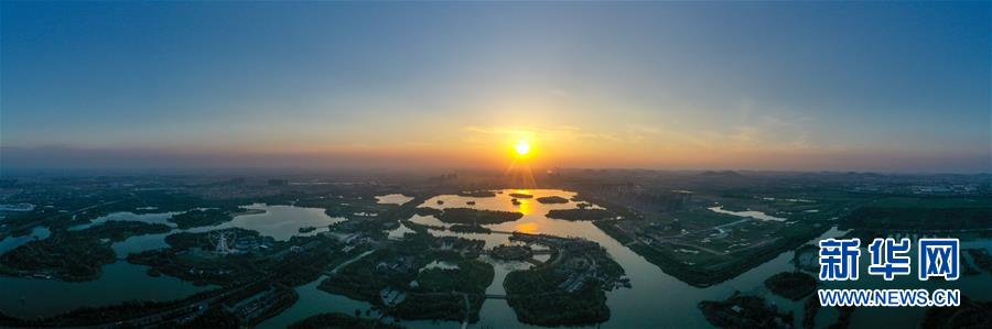9月8日拍攝的馬莊村村邊的潘安湖國家濕地公園景色(無人機全景照片)。這里曾是采煤塌陷區。 江蘇省徐州市賈汪區潘安湖街道馬莊村曾是