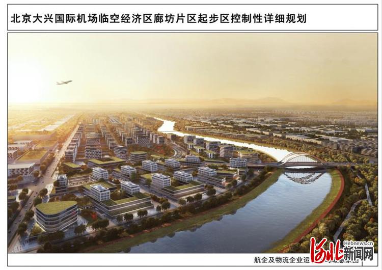 廊坊臨空經濟區起步區航企及物流企業運營區規劃效果圖。 京廊交界、機場旁邊,道路成網、樹木成林,一簇簇的鮮花盛開在道路兩側,一